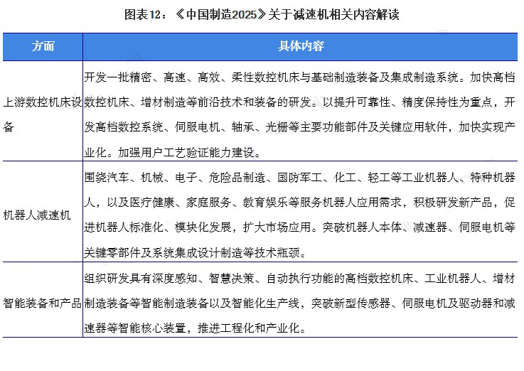 2015年5月国务院印发《中国制造2025》,全面部署实施制造强国战略,其中关于减速机相关政策如下: